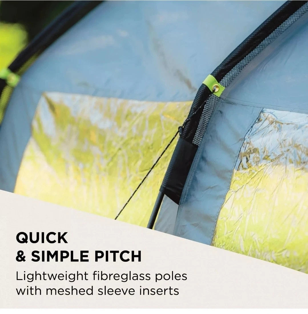 The Coleman Vail 6 Person Family Tent combines refined design with exceptional functionality. Crafted in a sleek grey finish, this tent boasts a superior 4000+ mm waterproof rating, ensuring protection against the elements. Spacious enough for six occupants, it offers a comfortable and elegant shelter for family excursions. Its thoughtful construction includes a practical carry case, facilitating effortless transport and setup. Ideal for discerning campers seeking both style and reliability in their outdoor accommodations.